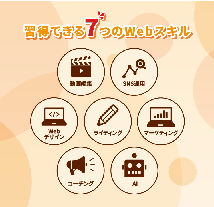 Webデザインや動画編集、AIなど、全7種類のスキルを現役フリーランスが監修。実務で通用する最新のノウハウを動画で学べます。自分のペースで繰り返し見られるので、初心者でも安心です。